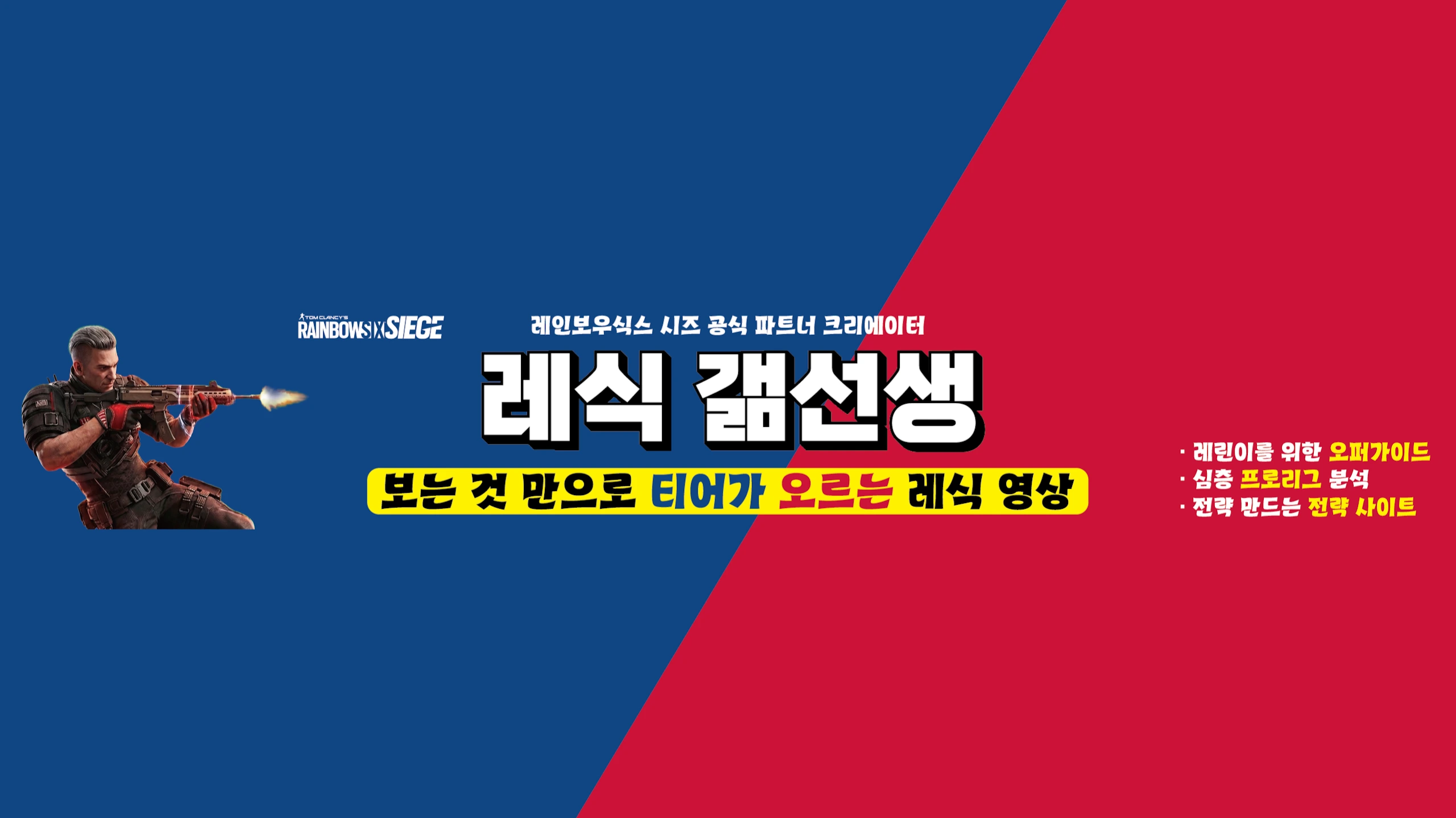 UBISOFT 레인보우식스 시즈 X 공식 파트너 크리에이터 레식 갦선생입니다. 레린이부터 고인물까지, 여러분의 실력과 재미를 위해 다양한 전략과 질 높은 정보를 제공하겠습니다. 📌 주요 콘텐츠 1. 심층 프로리그 분석 - 프로 전략을 실전에 적용해보자! 2. 전략노트 / 오퍼가이드 - 레린이를 위한 가장 쉬운 입문서! 3. 전략 사이트 운영 - 나만의 전략을 직접 만들고 공유하자! 4. 심도 깊은 패치노트 분석 - 어떤 오퍼 승률이 좋을까? 복잡한 레식, 갦선생이 쉽고 명확하게 풀어드립니다. 구독해서 레식의 재미를 함께 즐겨봅시다! 갦사합니다. 🌐 레식 전략 사이트 바로가기: https://www.r6s-gemi-strategy.com/